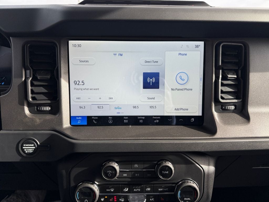 Apple CarPlay: Seamless smartphone integration for this unit - stay connected and entertained on the go! See what's behind you with the back up camera on this unit. Never get into a cold vehicle again with the remote start feature on this model. This Ford Bronco features a hands-free Bluetooth® phone system. Keep your hands warm all winter with a heated steering wheel in this model . The vehicle offers Android Auto for seamless smartphone integration. When you encounter slick or muddy roads, you can engage the four wheel drive on the vehicle and drive with confidence. This unit shines with an exquisite blue finish. It has a V6, 2.7L high output engine. The vehicle comes with a manual transmission. Anti-lock brakes are standard on the Ford Bronco. The fog lights cut through the weather so you can see what's ahead. Electronic Stability Control is one of many advanced safety features on this unit.