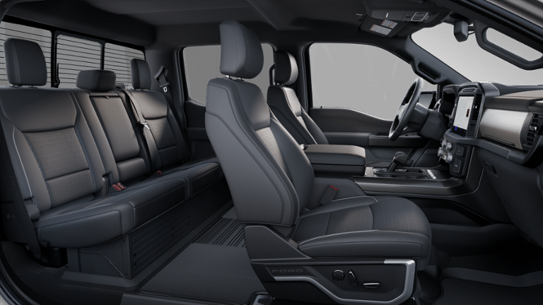Lariat Black Appearance Package: Black Grille; ActiveX Trimmed Bucket Seats; Black Exterior Badging; Gray Box Side Decal; 6" Extended Running Boards; 20" Gloss Black Painted Aluminum Wheels; Body-Color Front and Rear Bumpers; Body-Color Skull Caps and Door Handles; Black Taillamp Bezels; Dual Exhaust with Black Tips; Matte Black Tailgate F-150 Decal; Dark Interior Appliques; Black Grille; ActiveX Trimmed Bucket Seats; Black Exterior Badging; Gray Box Side Decal; 6" Black Running Boards; 20" Gloss Black Painted Aluminum Wheels; Body-Color Front and Rear Bumpers; Body-Color Skull Caps and Door Handles; Black Taillamp Bezels; Dual Exhaust with Black Tips; Matte Black Tailgate F-150 Decal; Dark Interior Appliques; Black Grille; ActiveX Trimmed Bucket Seats; Black Exterior Badging; Gray Box Side Decal; 18" Gloss Black Wheels; Body-Color Front and Rear Bumpers; Body-Color Skull Caps and Door Handles; Black Taillamp Bezels; Matte Black Tailgate F-150 Decal; Dark Interior Appliques. FX4 Off-Road Package: Tray Style Floor Liner Without Carpet Mats; Off-Road Tuned Front Shock Absorbers; Skid Plates; Monotube Rear Shocks; Rock Crawl Mode; 4x4 FX4 Off-Road Bodyside Decal; Hill Descent Control; Electronic Locking with 3.31 Axle Ratio. Equipment Group 501A Mid: 5.0L V8 Engine; Power-Sliding Rear Window; Electronic 10-Speed Automatic Transmission; 7. 100 lbs Payload Package GVWR; ActiveX Trimmed Bucket Seats; 3.31 Axle Ratio; 6" Angular Bright Anodized Step Bar; B&O Sound System by Bang and Olufsen; Illuminated Driver and Passenger Visors; 20" Chrome-Like PVD Wheels; 275/60R20 All-Terrain Tires. Mobile Office Package: Wireless Charging; Partitioned Lockable Rear Storage; Console Worksurface. Tow/haul Package: Integrated Trailer Brake Controller; Electronic Locking with 3.73 Axle Ratio; Integrated Trailer Brake Controller; Electronic Locking with 3.55 Axle Ratio; Integrated Trailer Brake Controller; Electronic Locking with 3.73 Axle Ratio. 6" Angular Bright Anodized Step Bar. BlueCruise Equipped (1year Plan). Max Tow Electronic Locking with 3.55 Axle Ratio. Tray Style Floor Liner with Carpet Mats. Wheel Well Liner. Skid Plates. **Equipment listed is based on original vehicle build and subject to change. Please confirm the accuracy of the included equipment by calling the dealer prior to purchase.**