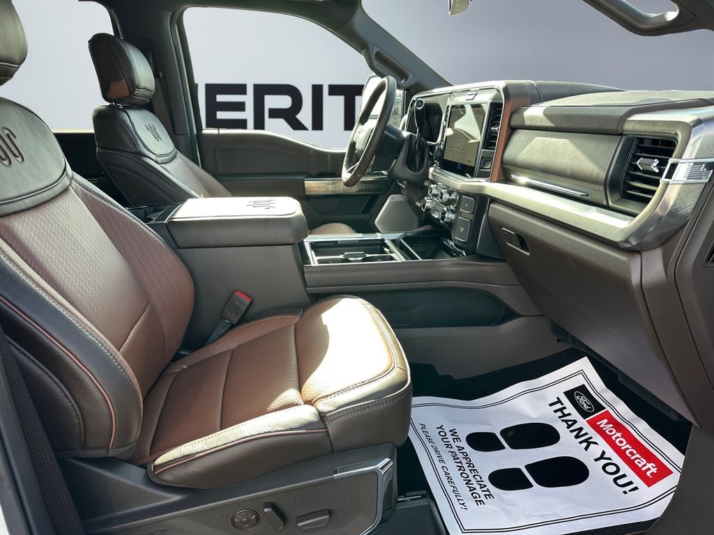 FX4 Off-Road Package: Transfer Case and Fuel Tank Skid Plates; Hill Descent Control; Off-Road Specifically Tuned Shock Absorbers; Unique FX4 Off-Road Box Decal. Tremor Off-Road Package: Tremor Off-Road Decal; Transfer Case and Fuel Tank Skid Plates; LT285/75R18E BSW A/T Tires; LT285/75R18E BSW Spare Tire; Textured Matte Finish Off-Road Running Boards; Conventional Road Spare Wheel; 18" Ebony Black Machined and Painted Aluminum Wheels; Electronic-Locking with 3.55 Axle Ratio; Electronic-Locking with 4.30 Axle Ratio; Tremor Off-Road Decal; Transfer Case and Fuel Tank Skid Plates; LT285/75R18E BSW A/T Tires; LT285/75R18E BSW Spare Tire; Textured Matte Finish Off-Road Running Boards; Conventional Road Spare Wheel; 18" Ebony Black Machined and Painted Aluminum Wheels; Tremor Off-Road Decal; Transfer Case and Fuel Tank Skid Plates; LT285/75R18E BSW A/T Tires; LT285/75R18E BSW Spare Tire; Textured Matte Finish Off-Road Running Boards; Conventional Road Spare Wheel; 18" Ebony Black Machined and Painted Aluminum Wheels; Electronic-Locking with 3.55 Axle Ratio; Electronic-Locking with 4.30 Axle Ratio; Tremor Off-Road Decal; Transfer Case and Fuel Tank Skid Plates; LT285/75R18E BSW A/T Tires; LT285/75R18E BSW Spare Tire; Textured Matte Finish Off-Road Running Boards; Conventional Road Spare Wheel; 18" Ebony Black Machined and Painted Aluminum Wheels. Order Code 710A: Unique King Ranch Leather 40/console/40 Seats; 20" Bright Machined Aluminum Wheels; TorqShift 10-Speed Automatic Transmission; LT275/65Rx20E BSW A/T (4) Tires; 11. 499 Lb Payload Package GVWR; Electronic-Locking with 3.73 Axle Ratio; B&O Unleashed Sound System by Bang & Olufsen Radio; 7.3L 2V DEVCT NA PFI V8 Gas Engine. Star White Metallic TC. Star White Metallic TC. Pro Power Onboard - 2kW. 5th Wheel/gooseneck Hitch Prep Package. Electronic-Locking with 3.55 Axle Ratio. Retractable Rear Corner Bed Step. Rapid-Heat Supplemental Cab Heater. Front and Rear Wheel Well Liners. Upfitter Switches (6). All-Weather Floor Mats. LED Roof Clearance Lights. **Equipment listed is based on original vehicle build and subject to change. Please confirm the accuracy of the included equipment by calling the dealer prior to purchase.**